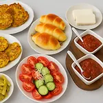 An Italian breakfast is offered at the Vila Mozaik Kavaje.